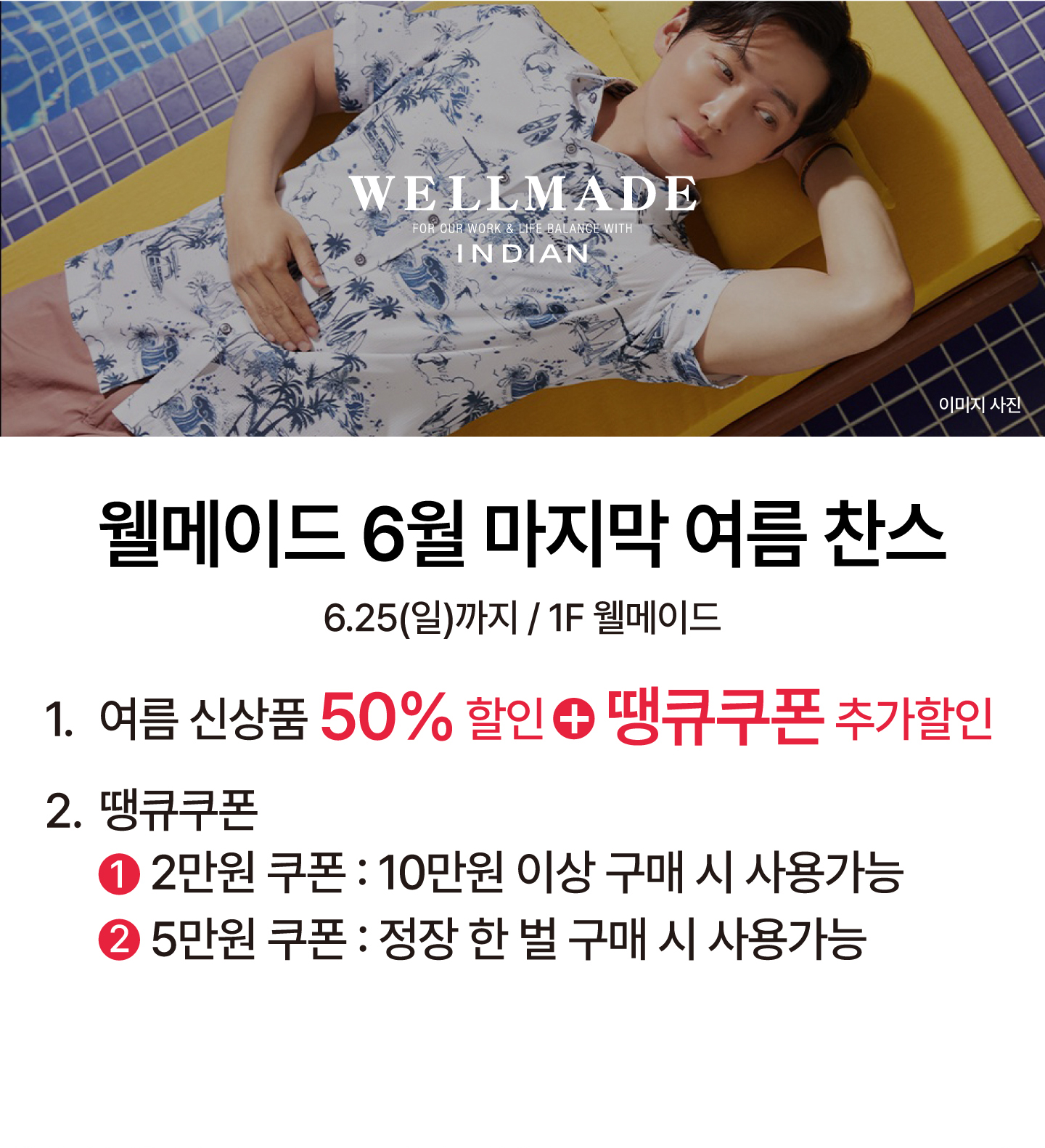 웰메이드 6월 마지막 여름 신상품 50% 할인