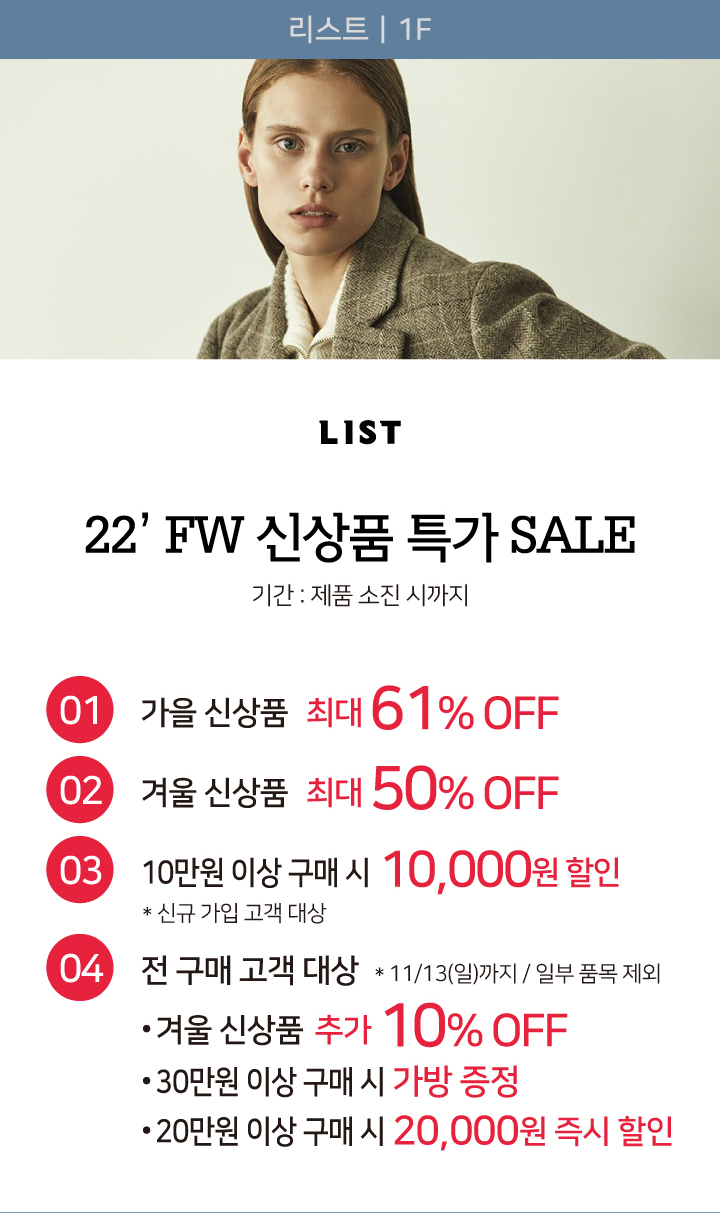 리스트 22FW 신상품 특가 SALE