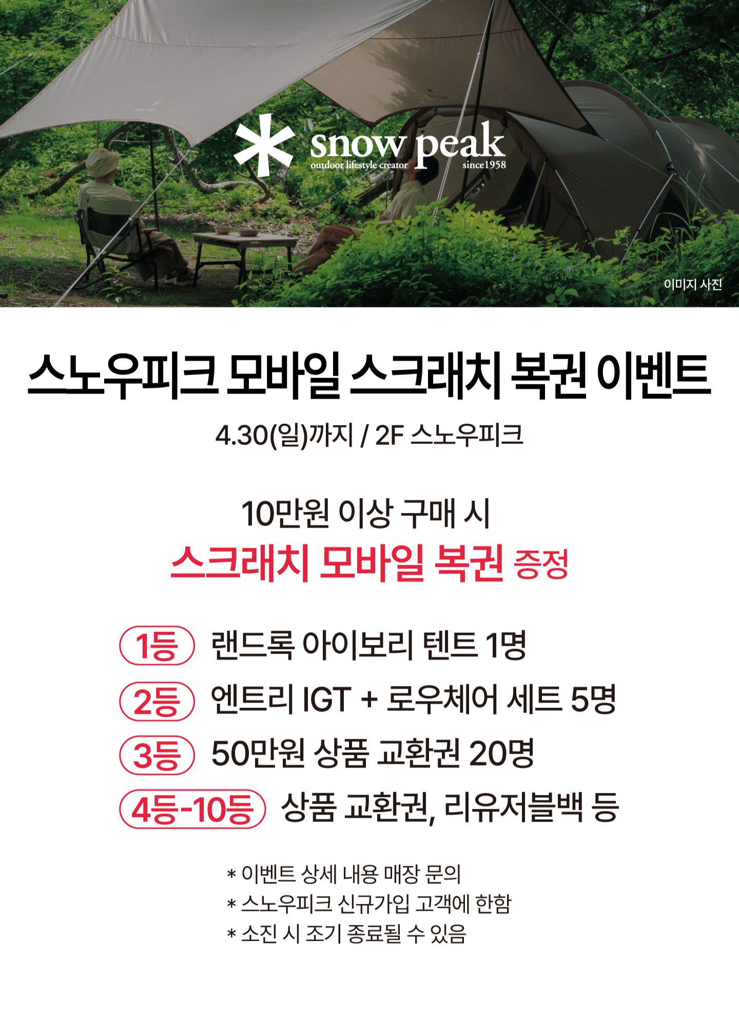 스노우피크 모바일 스크래치 복권이벤트