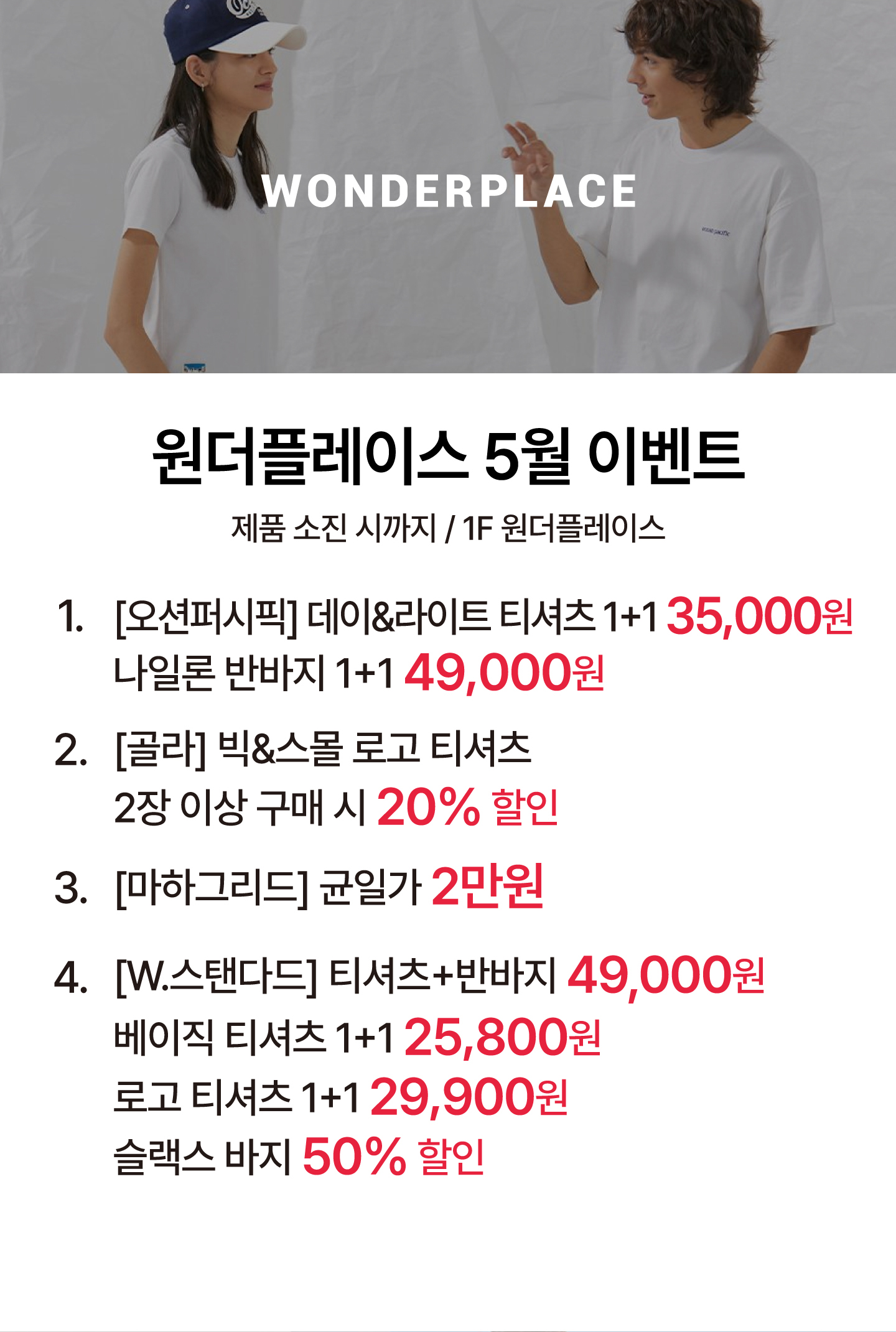 원더플레이스 5월 이벤트 브랜드 별 할인