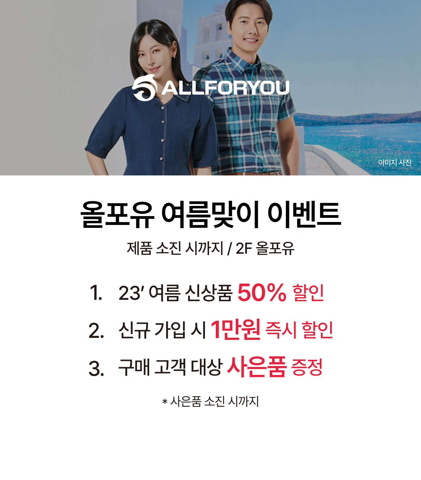 올포유 여름맞이 이벤트 신상품 50% 할인