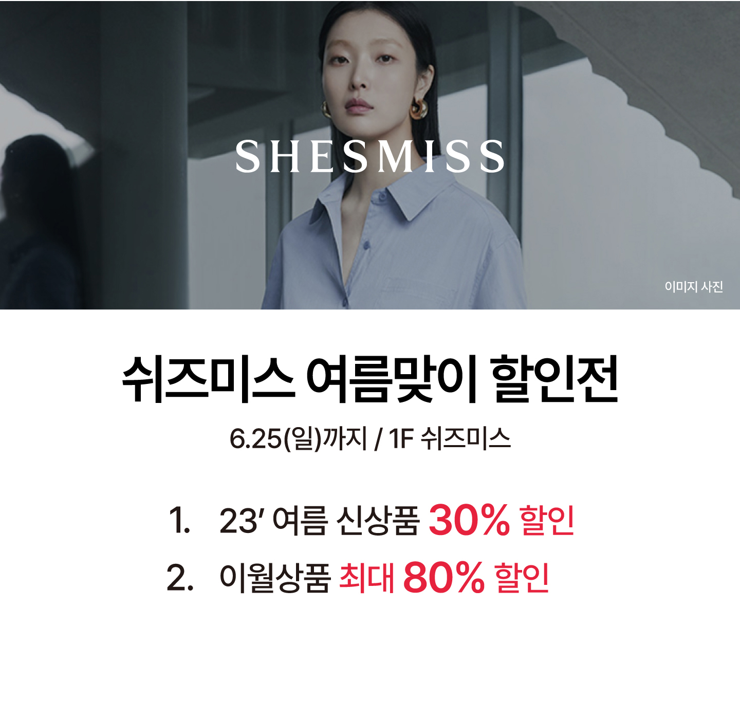 쉬즈미스 여름맞이 이월상품 최대 80% 할인
