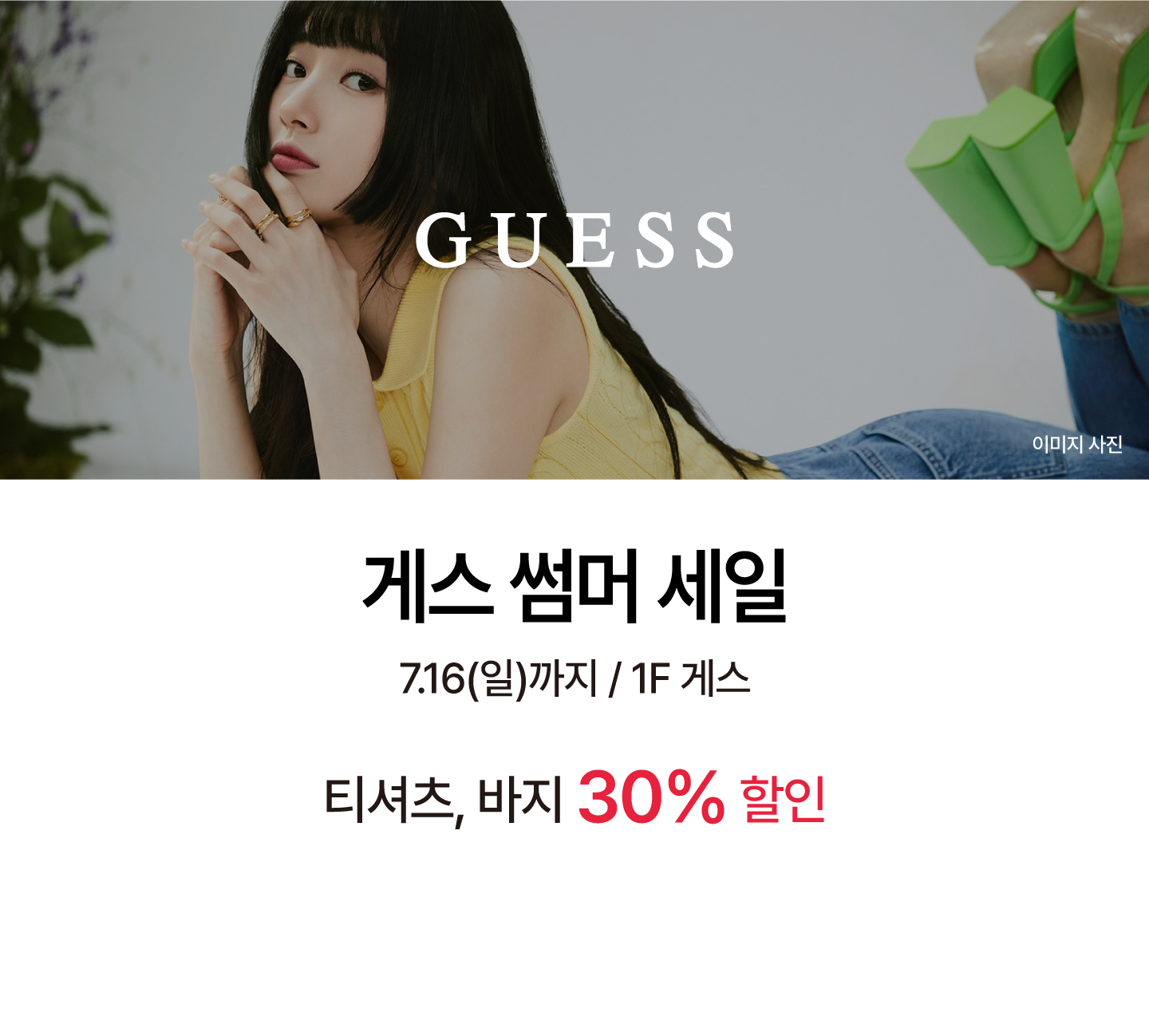 게스 썸머 세일 티셔츠, 바지 30% 할인