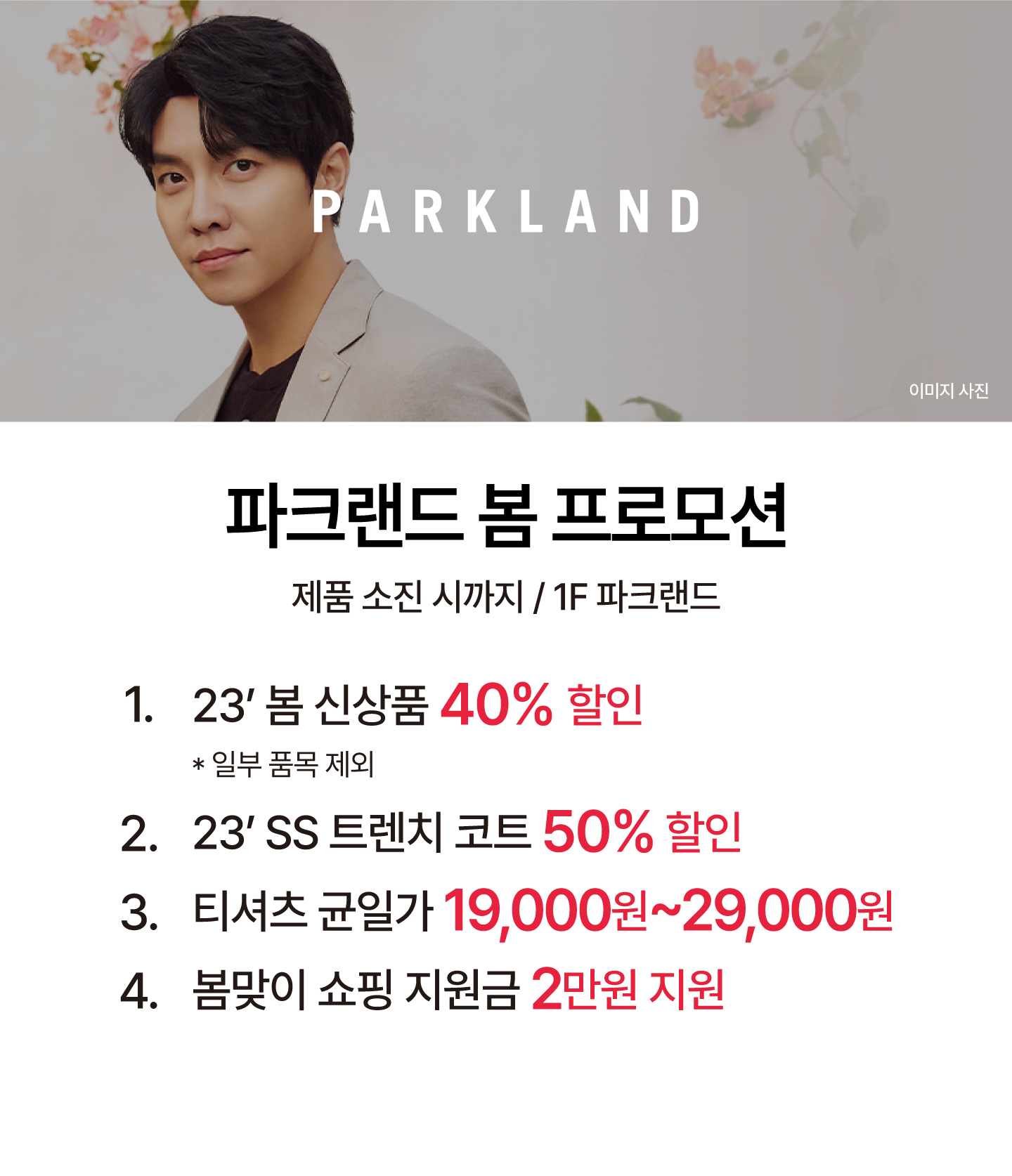 파크랜드 봄 프로모션 신상 40% OFF