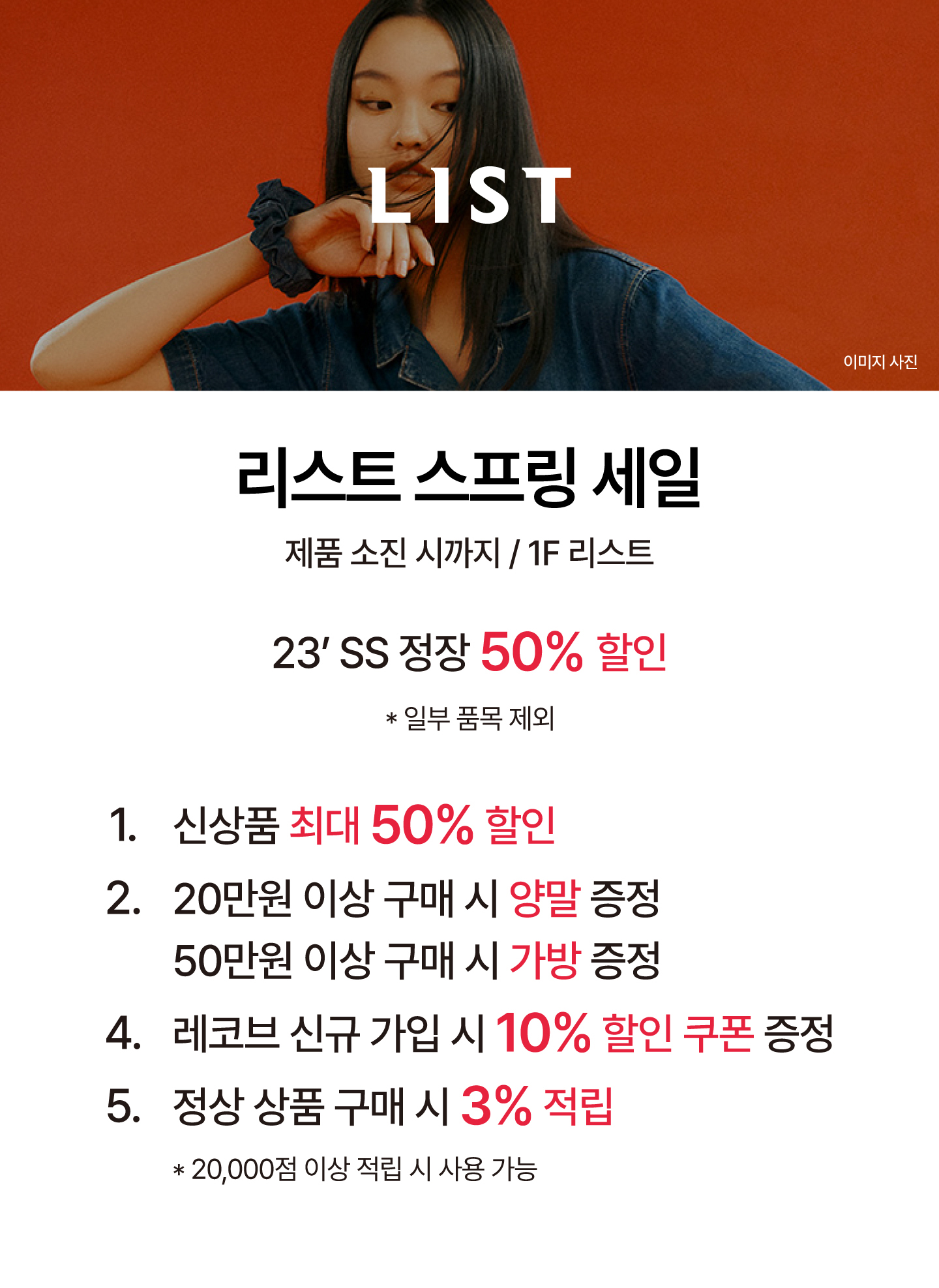 리스트 스프링 세일 신상품 최대 50% 할인